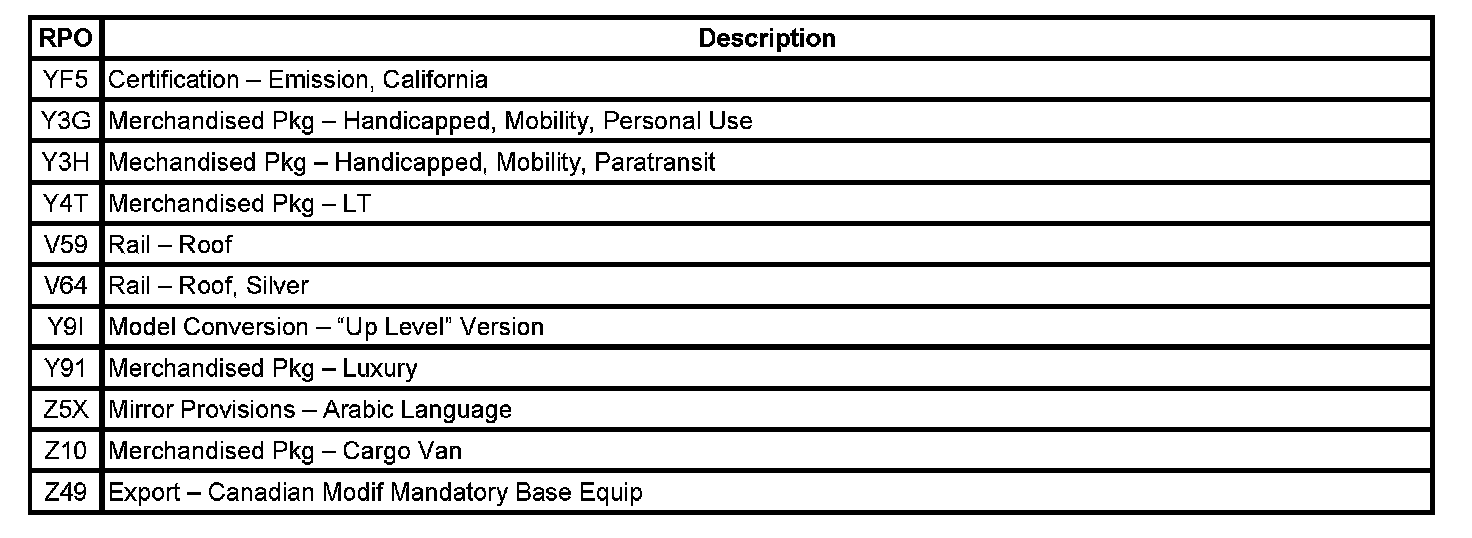 RPO Code List (Part 3):
