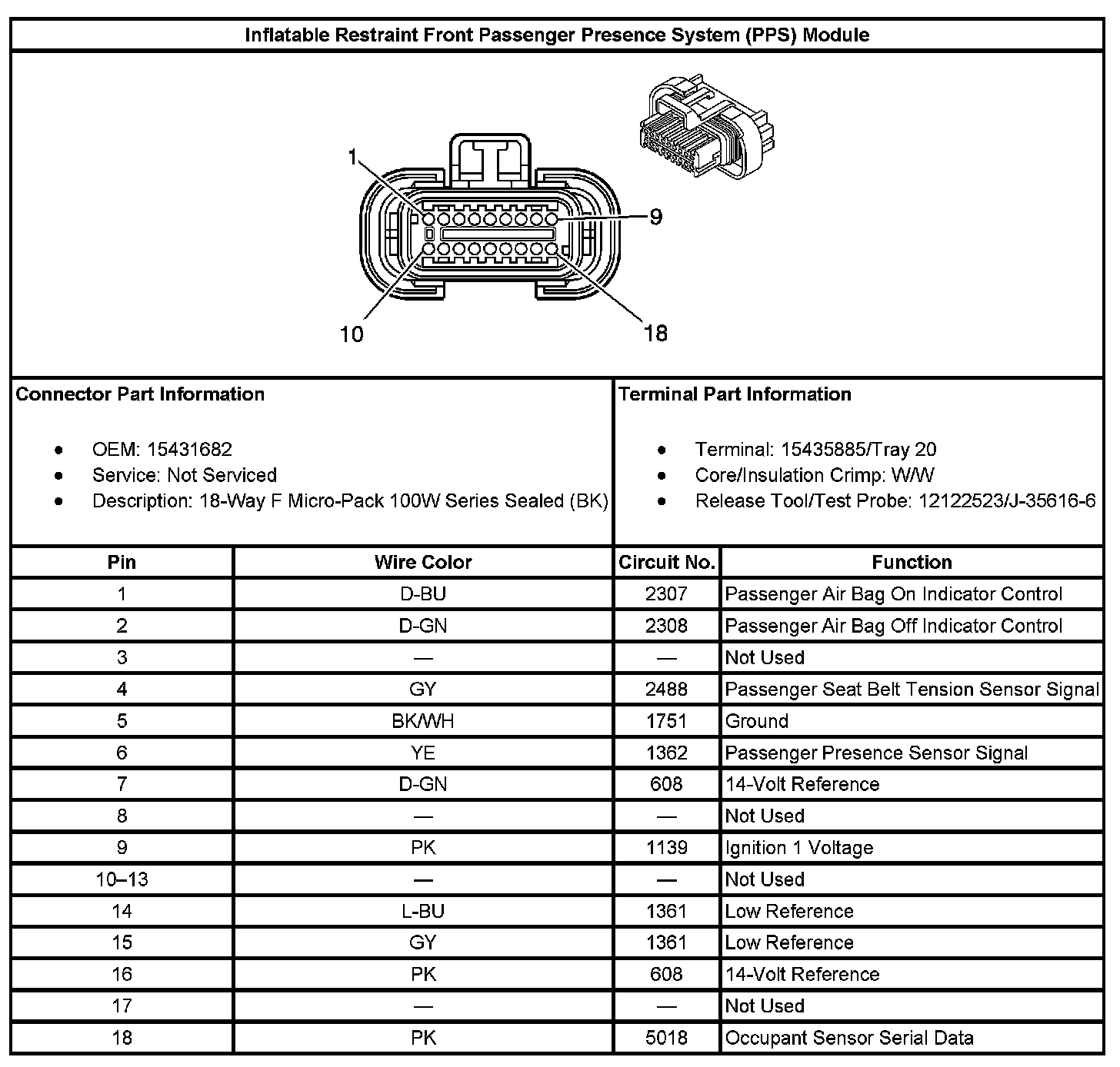 Inflatable Restraint Front Passenger Presence System (PPS) Module: