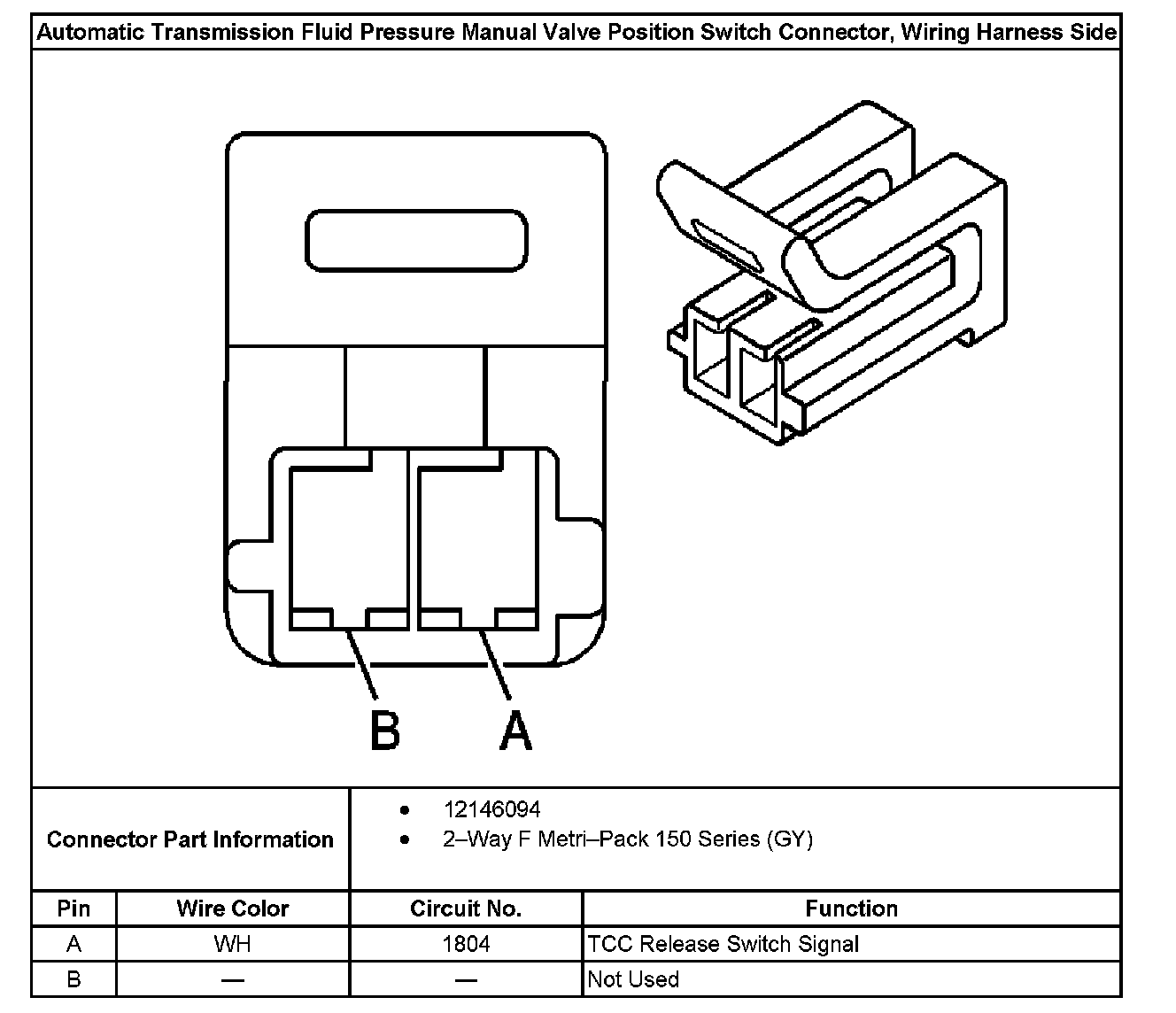 Automatic Transmission Fluid Pressure Manual Valve Position Switch Connector, Wiring Harness Side: