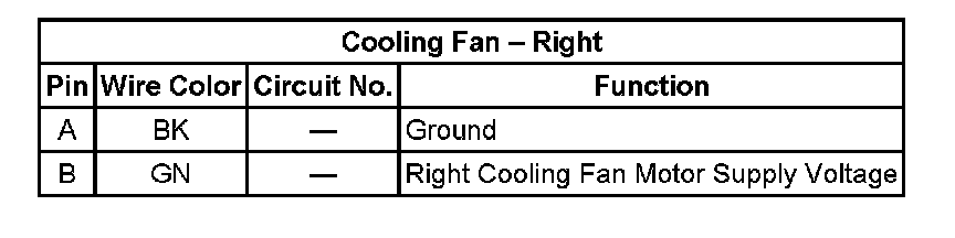 Right Cooling Fan 2-Way Connector End Views - 1: