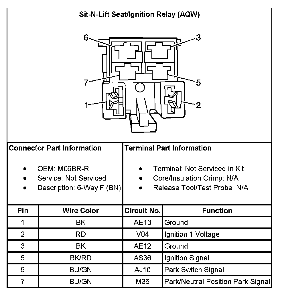 Sit-N-Lift Seat/Ignition Relay (With RPO Code AQW):