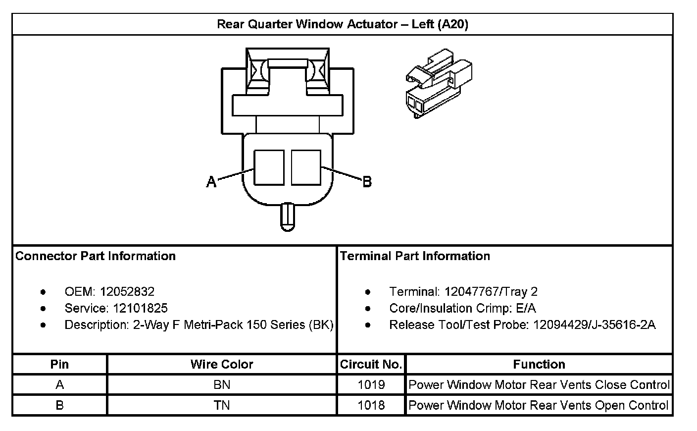 Rear Quarter Window Actuator - Left (With RPO Code A20):