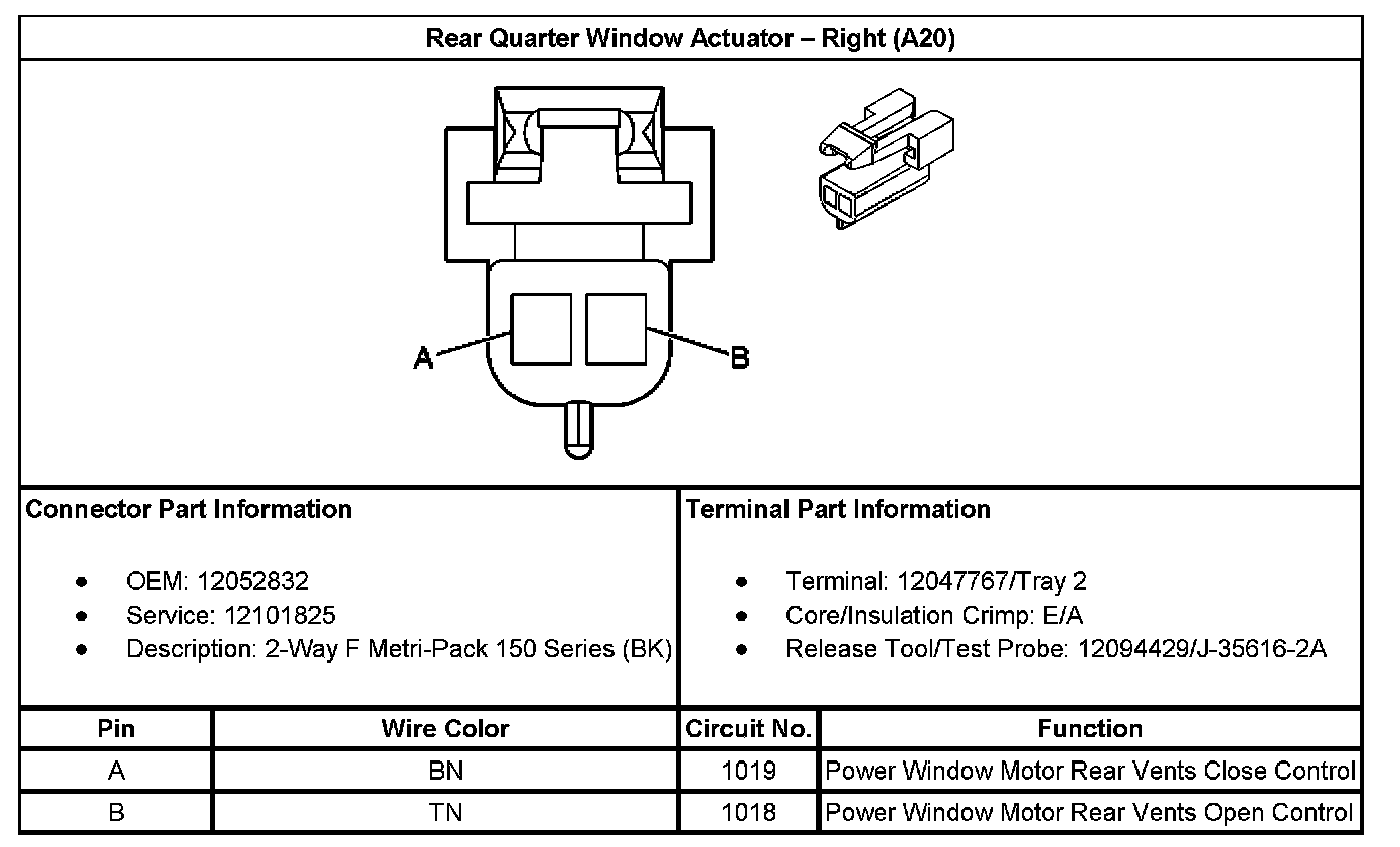 Rear Quarter Window Actuator - Right (With RPO Code A20):