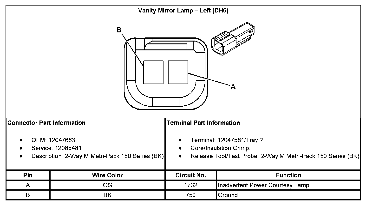 Vanity Mirror Lamp - Left (With RPO Code DH6):