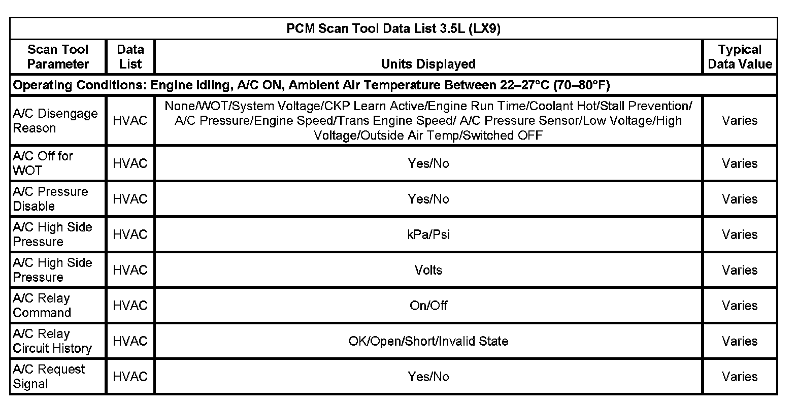 HVAC Control Module Scan Tool Data List: