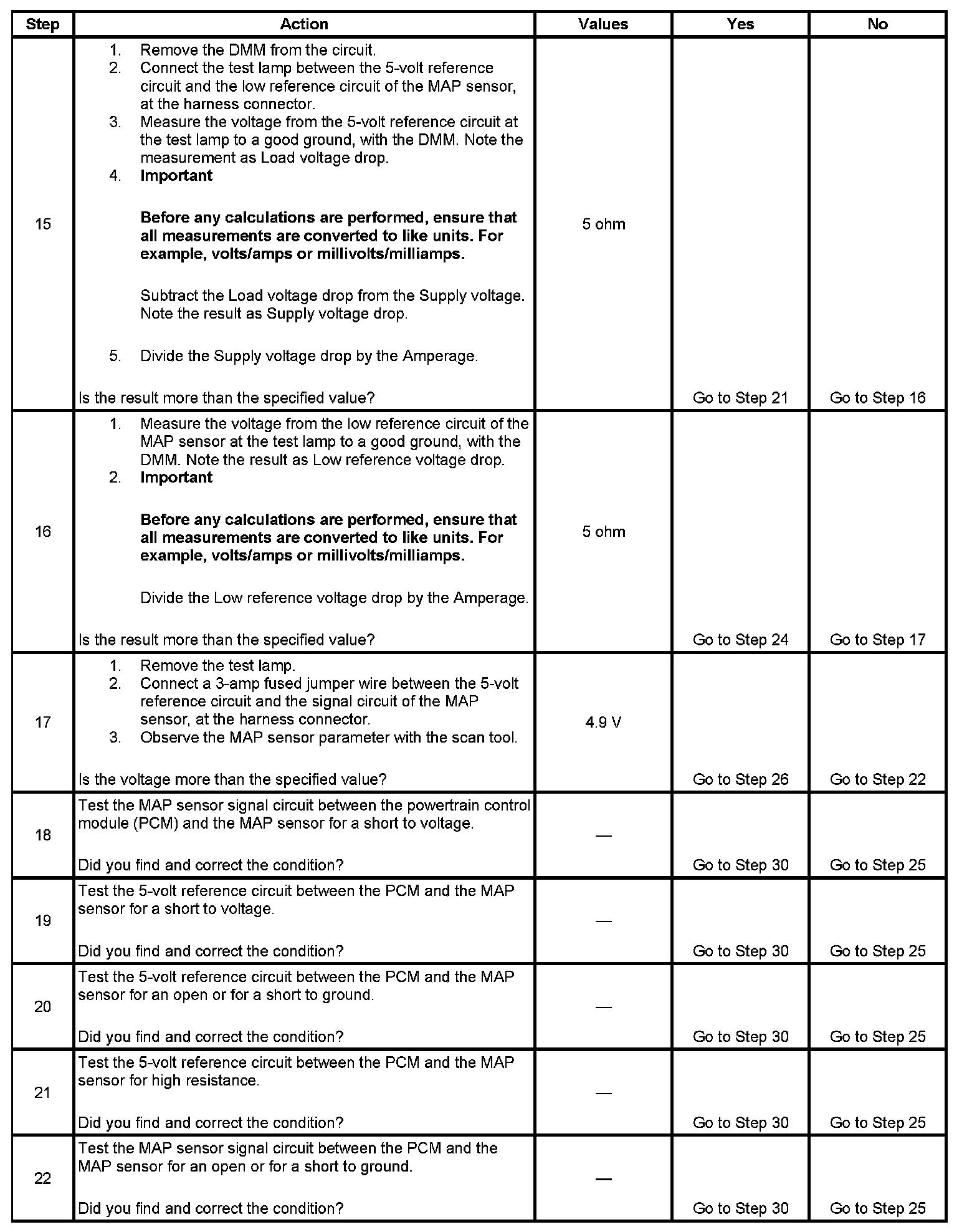 12. The measurement noted in this step will be used in subsequent steps if the measurement does not exceed the specified value.