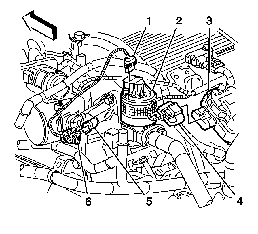 1. Disconnect the electrical connector (1) from the exhaust gas recirculation (EGR) valve (2).