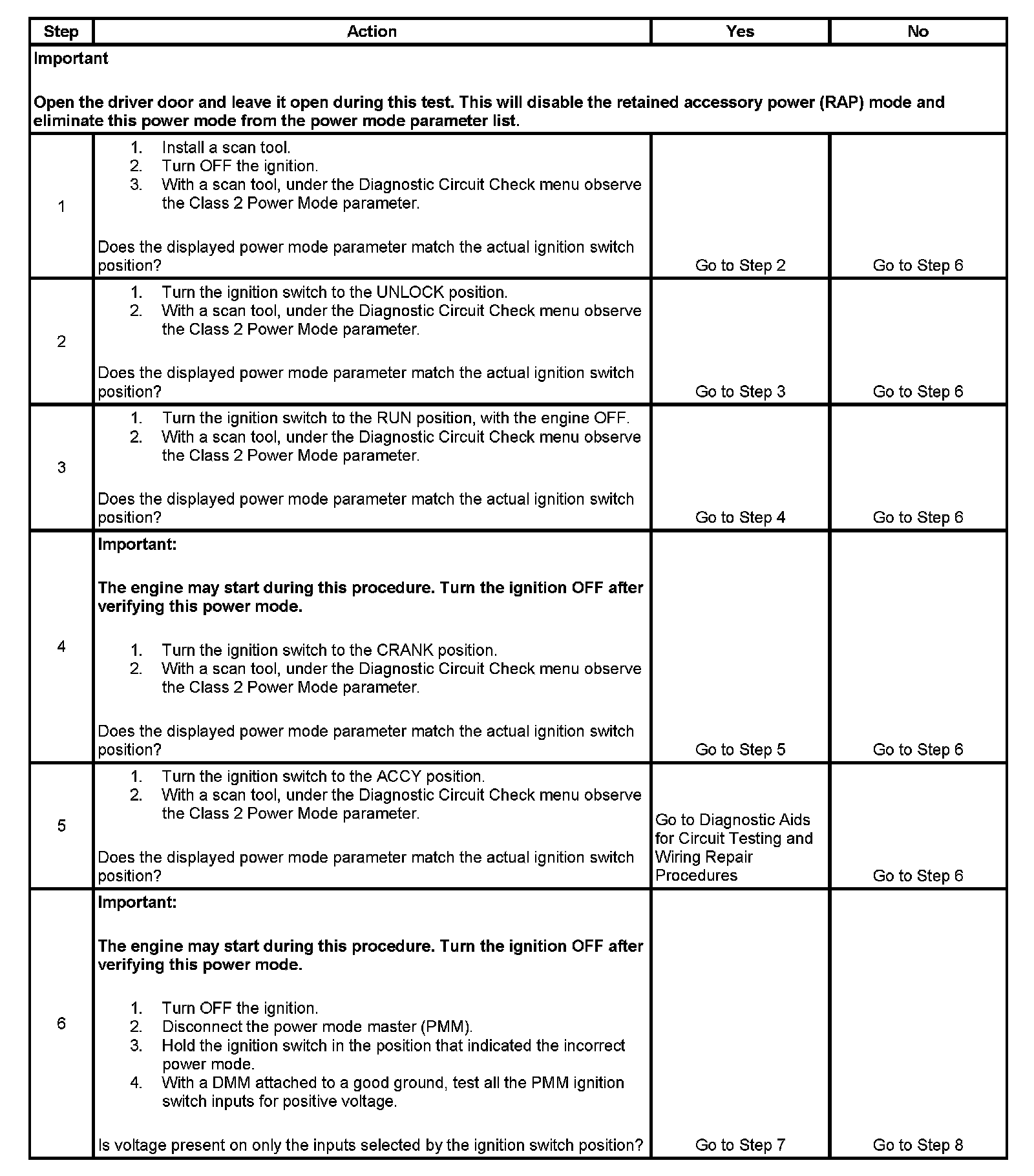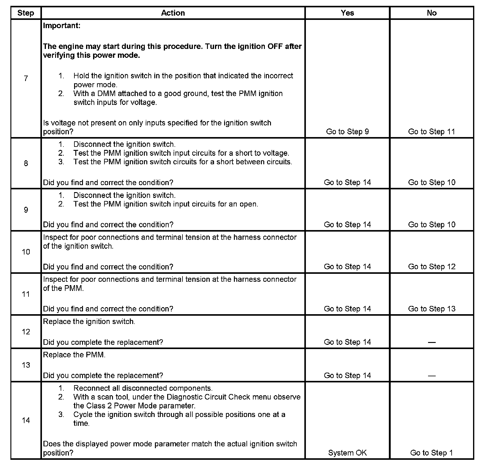 8. If any ignition switch parameters that should be inactive in the present ignition switch position are active, 2 ignition switch signal circuits may be shorted together.