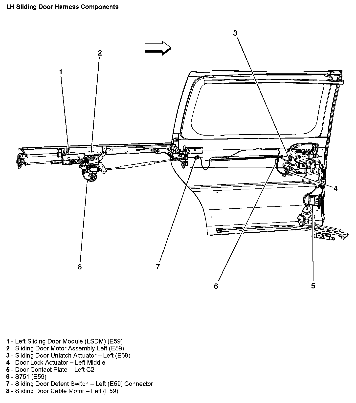 LH Sliding Door Harness Components:
