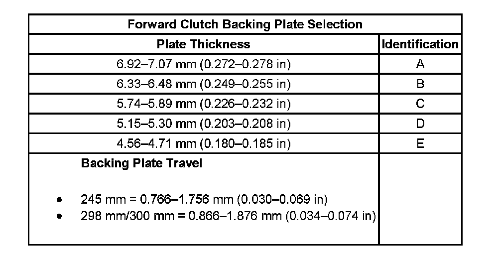Forward Clutch Backing Plate Selection:
