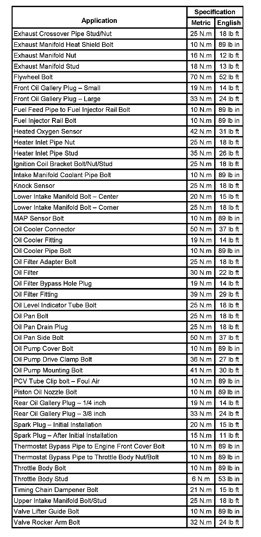 Fastener Tightening Specifications
