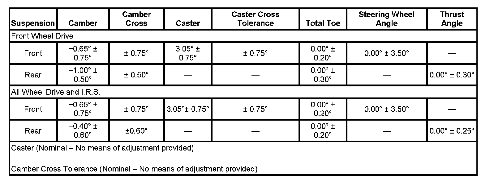 Wheel Alignment Specifications