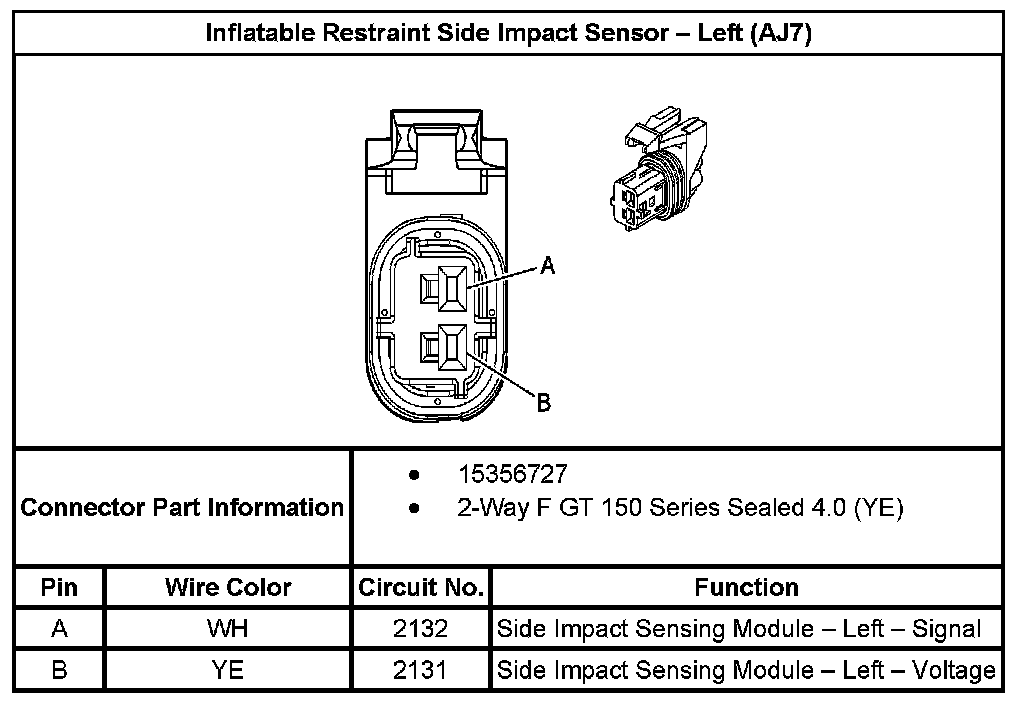Inflatable Restraint Side Impact Sensor - Left (With RPO Code AJ7):
