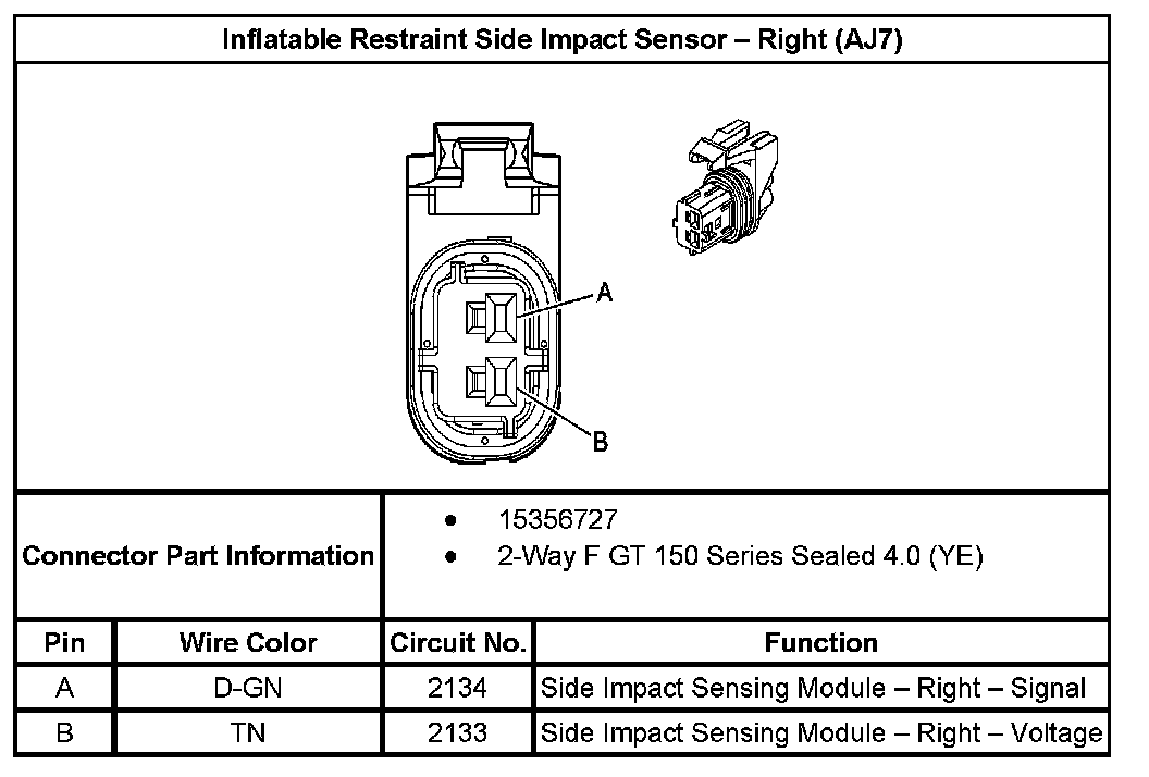 Inflatable Restraint Side Impact Sensor - Right (With RPO Code AJ7):