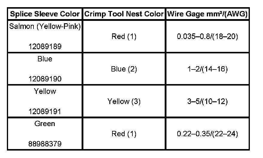 6. Select the proper DuraSeal splice sleeve according to the wire size. Refer to the above table at the beginning of the repair procedure for the color coding of the DuraSeal splice sleeves and the crimp tool nests.