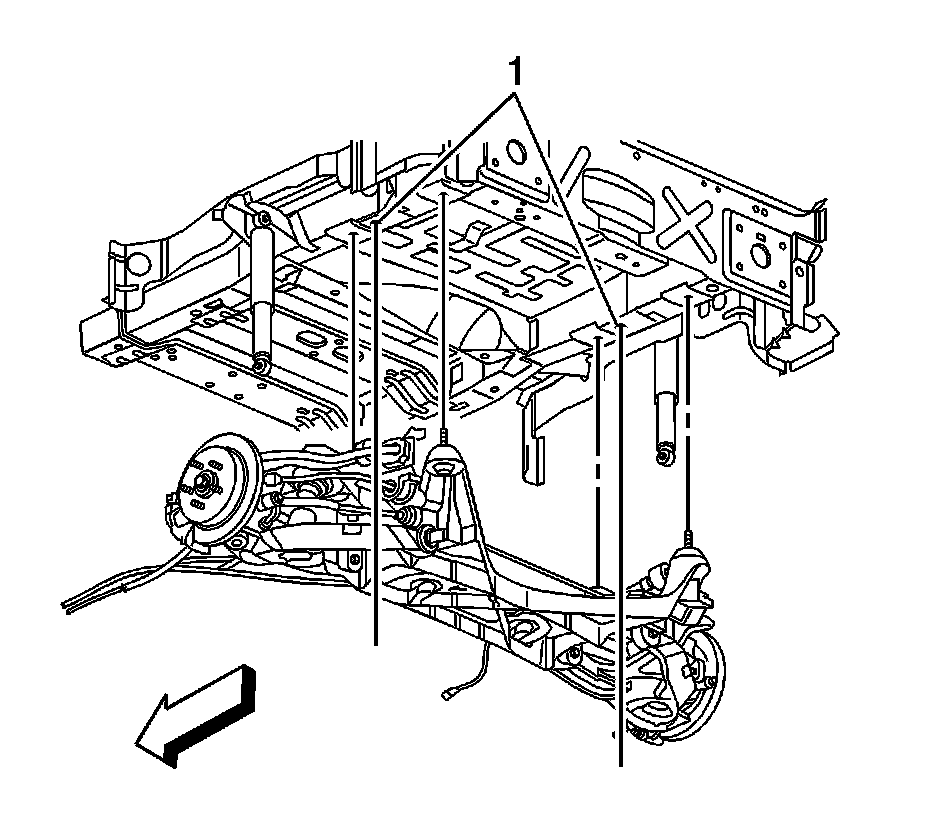 2. Install the rear axle lower control arms onto the rear crossmember. Refer to Rear Axle Lower Control Arm Replacement in Rear Suspension.