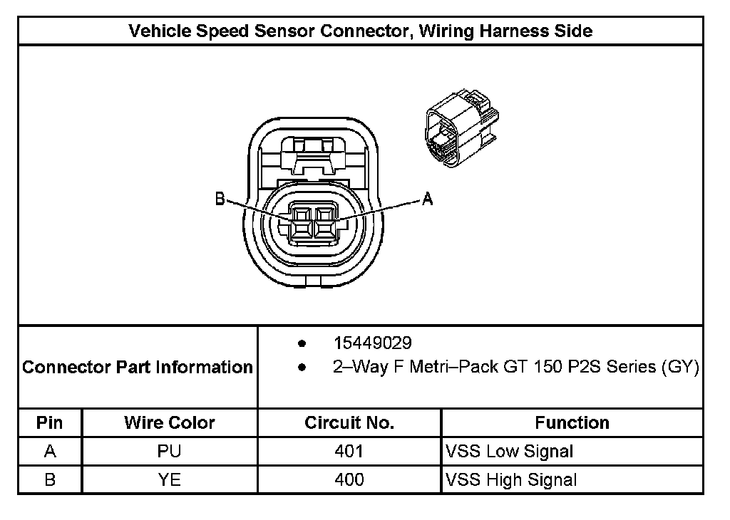 Vehicle Speed Sensor Connector, Wiring Harness Side: