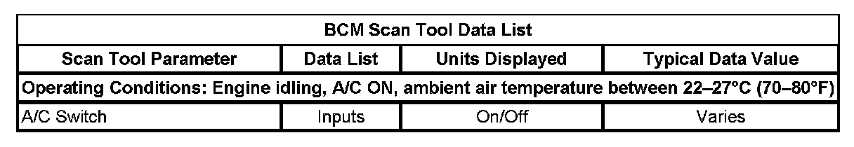 BCM Scan Tool Data List: