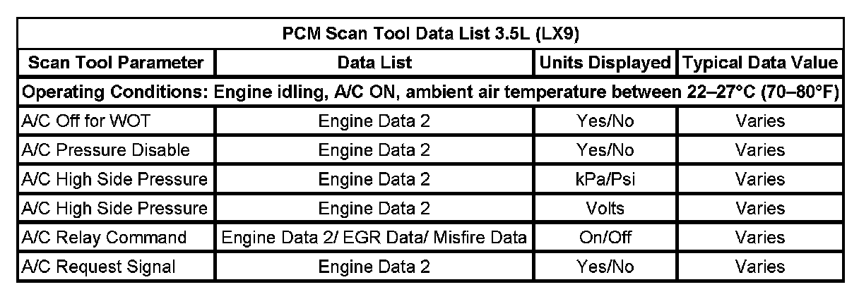 PCM Scan Tool Data List: