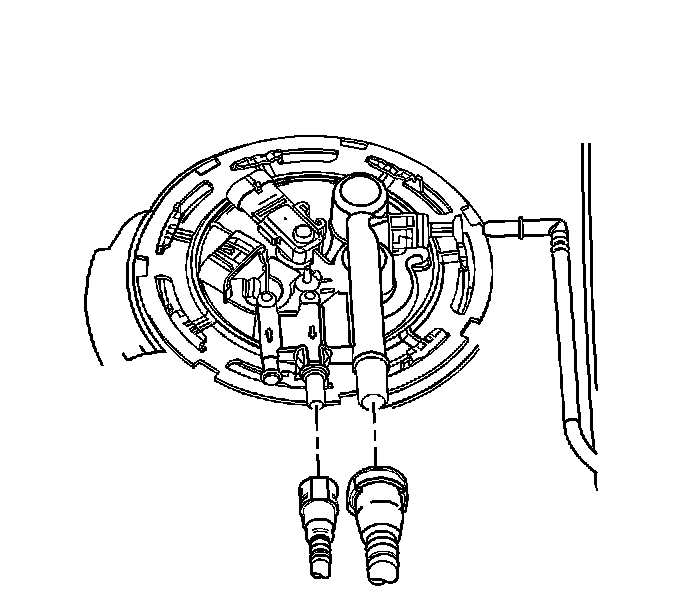 NOTE: Do Not handle the fuel sender assembly by the fuel pipes. The amount of leverage generated by handling the fuel pipes could damage the joints.