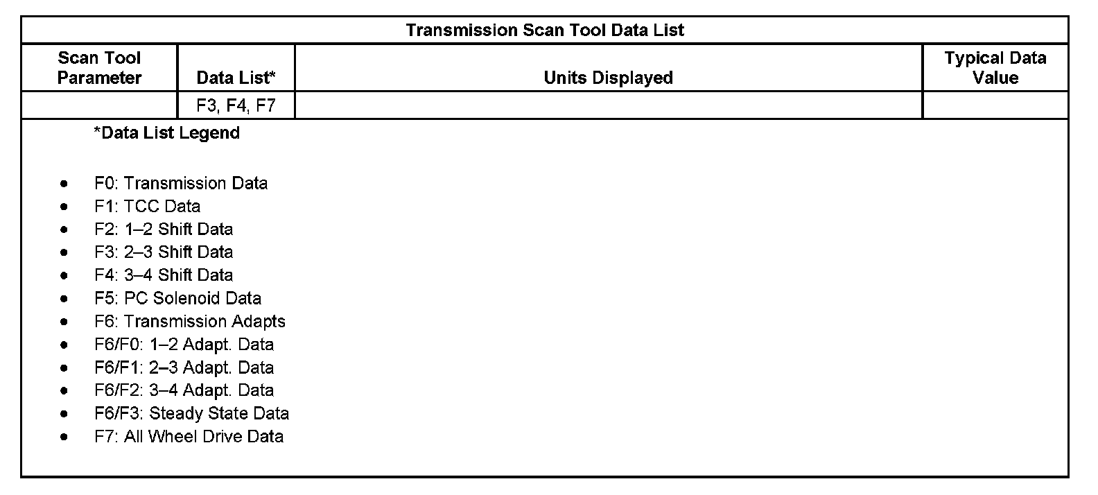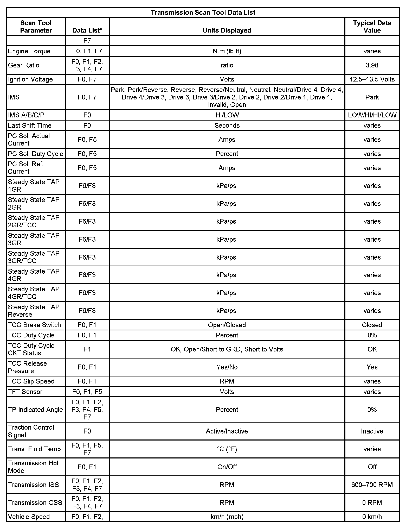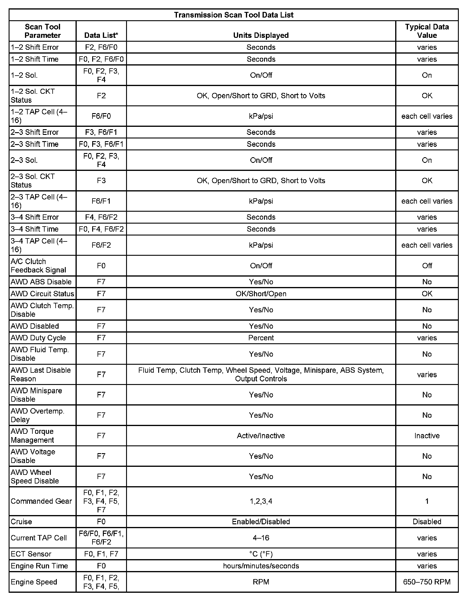 Only the parameters listed below are used in this manual for diagnosing. If a scan tool displays other parameters, the values are not recommended by General Motors for use in diagnosis.