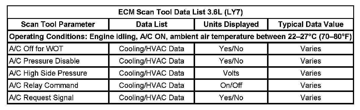 HVAC Control Module Scan Tool Data List: