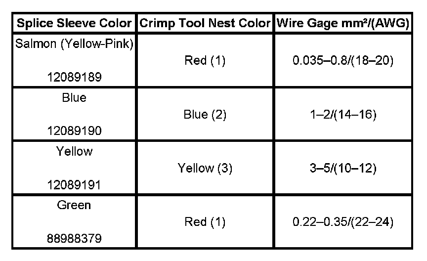 6. Select the proper DuraSeal splice sleeve according to the wire size. Refer to the above table at the beginning of the repair procedure for the color coding of the DuraSeal splice sleeves and the crimp tool nests.