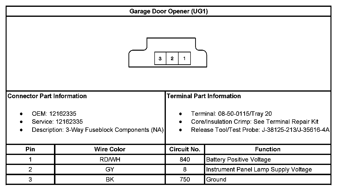 Garage Door Opener (With RPO Code UG1):
