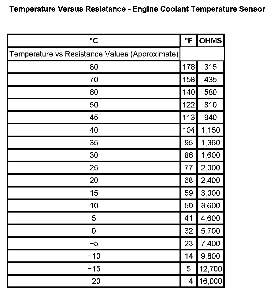 Temperature Versus Resistance - Engine Coolant Temperature Sensor: