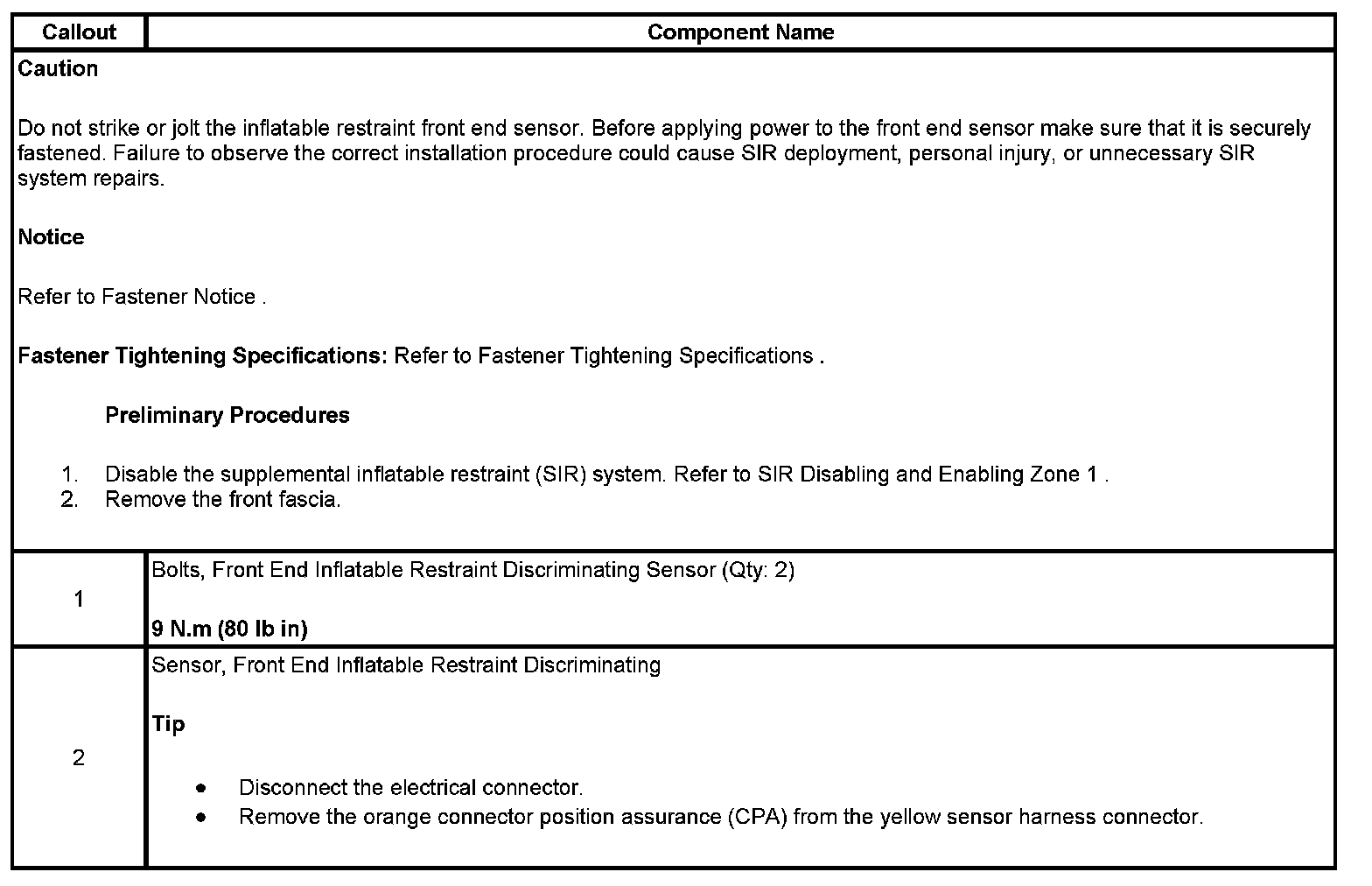 INFLATABLE RESTRAINT FRONT END SENSOR REPLACEMENT