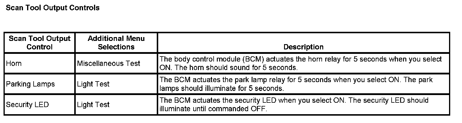 Scan Tool Output Controls: