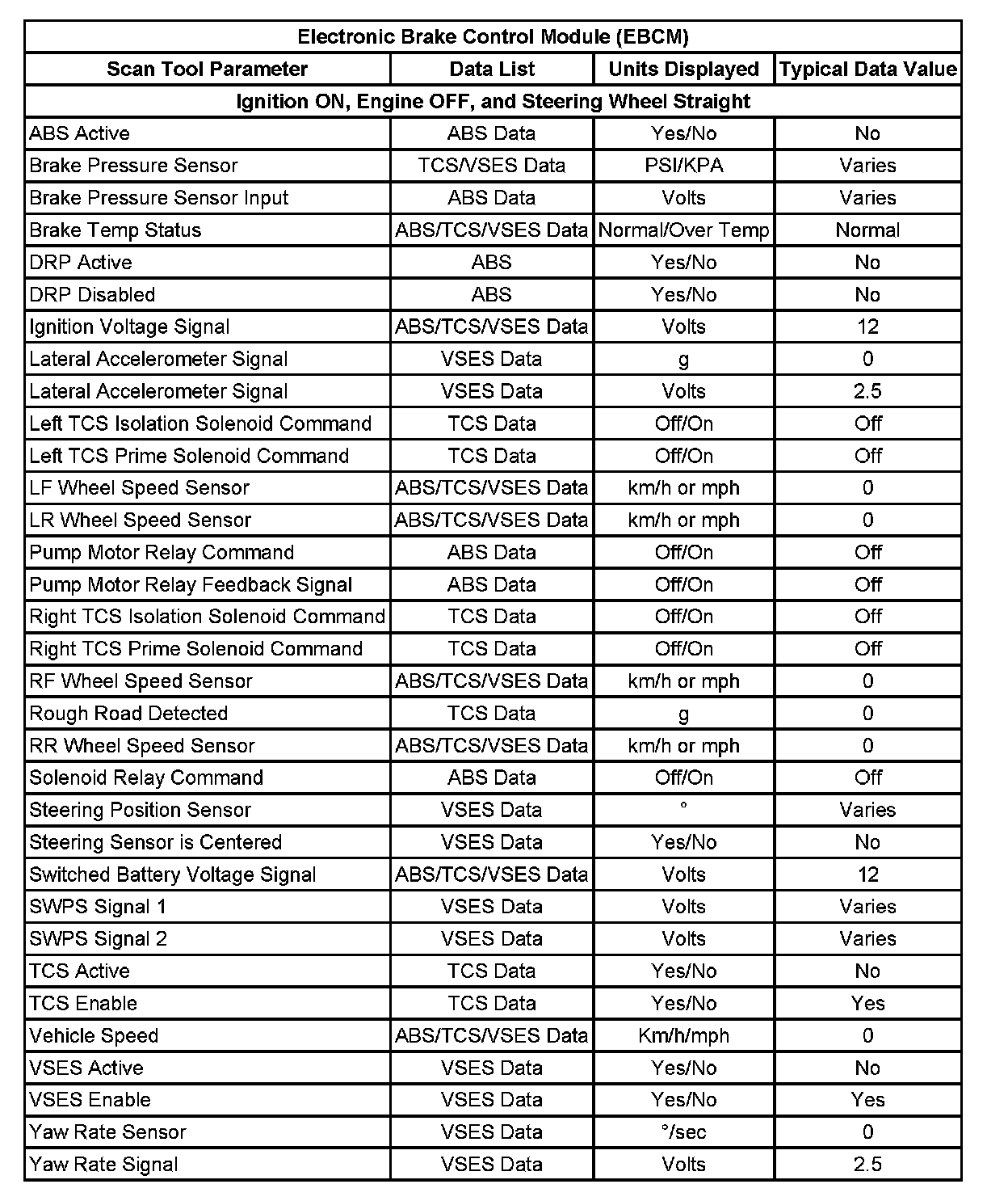 Scan Tool Data List