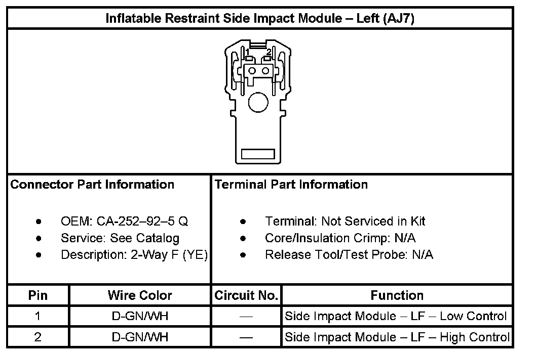 Inflatable Restraint Side Impact Module - Left (With RPO Code AJ7):