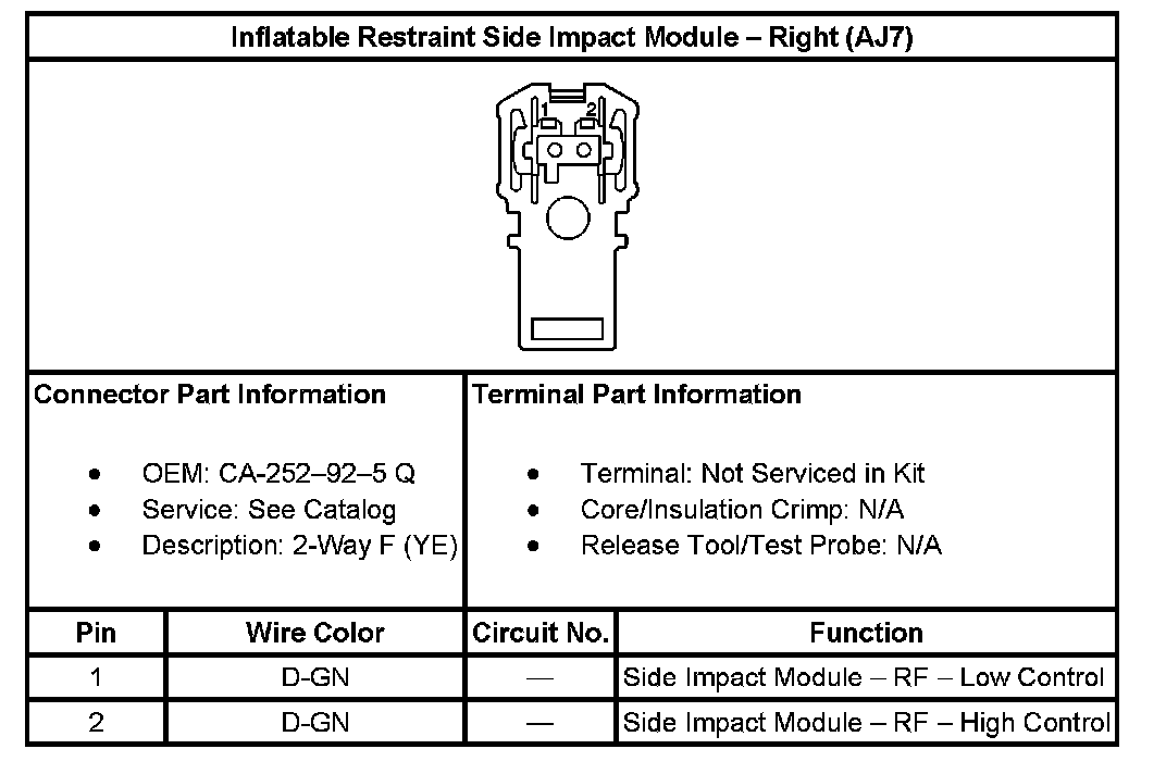 Inflatable Restraint Side Impact Module - Right (With RPO Code AJ7):