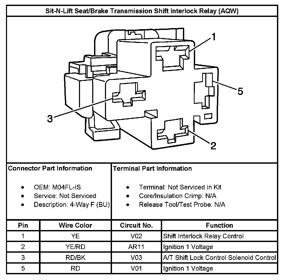 Sit-N-Lift Seat/Brake Transmission Shift Interlock Relay (With RPO Code AQW):
