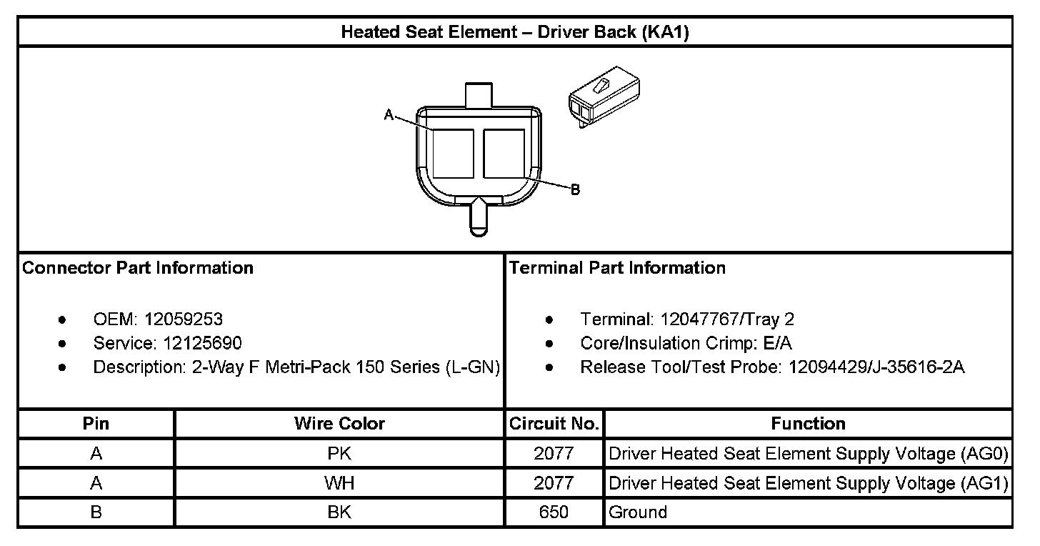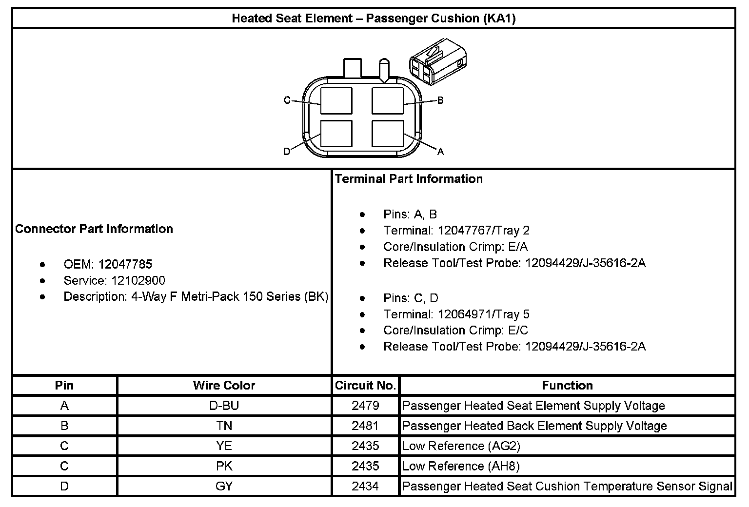 Heated Seat Element - Passenger Back (With RPO Code KA1):