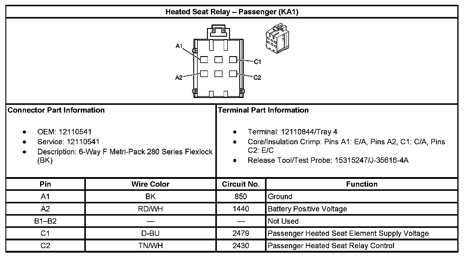 Heated Seat Relay - Passenger (With RPO Code KA1):