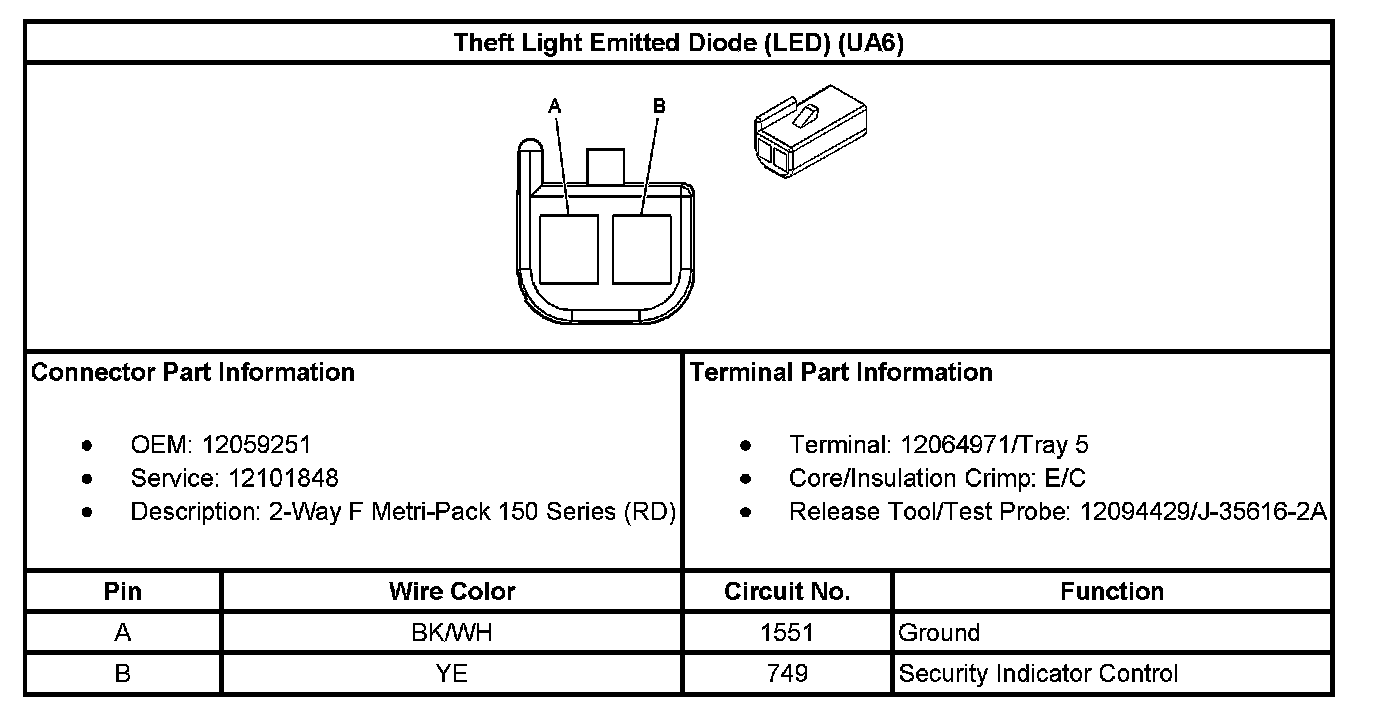 Theft Light Emitted Diode (LED) (With RPO Code UA6):