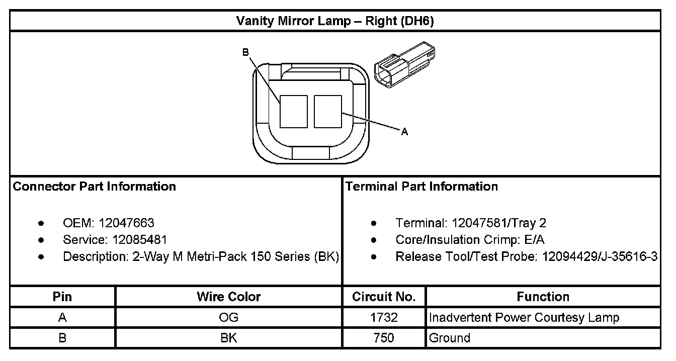 Vanity Mirror Lamp - Right (With RPO Code DH6):