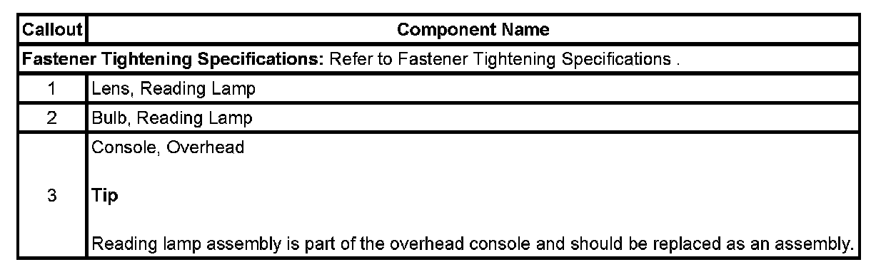 READING LAMP AND BULB REPLACE - OVERHEAD CONSOLE