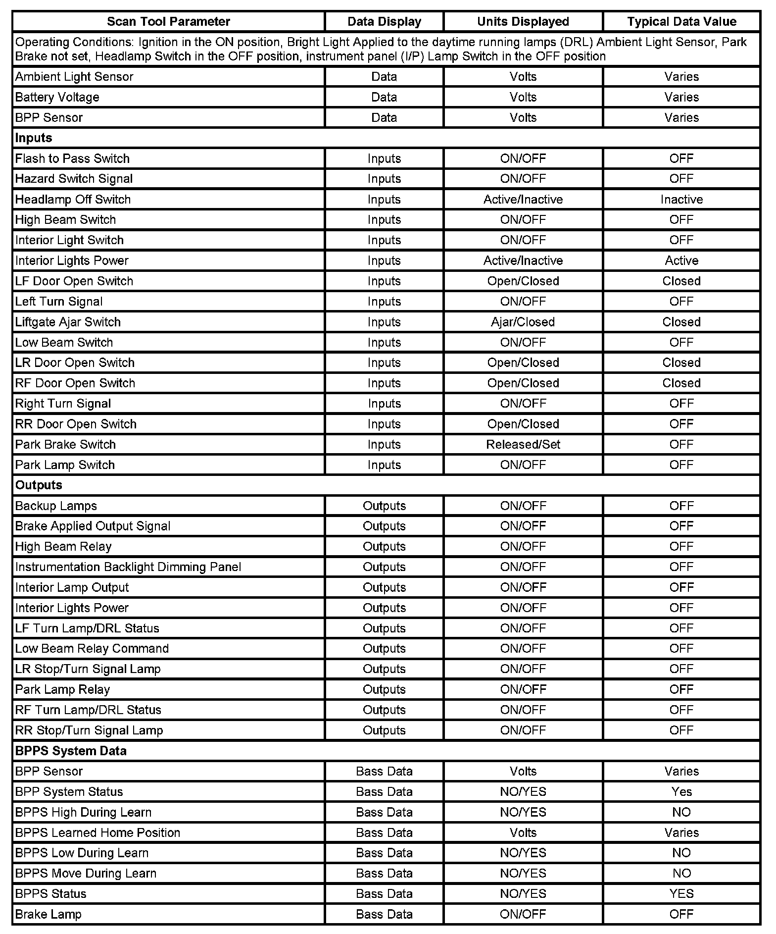 Scan Tool Data List