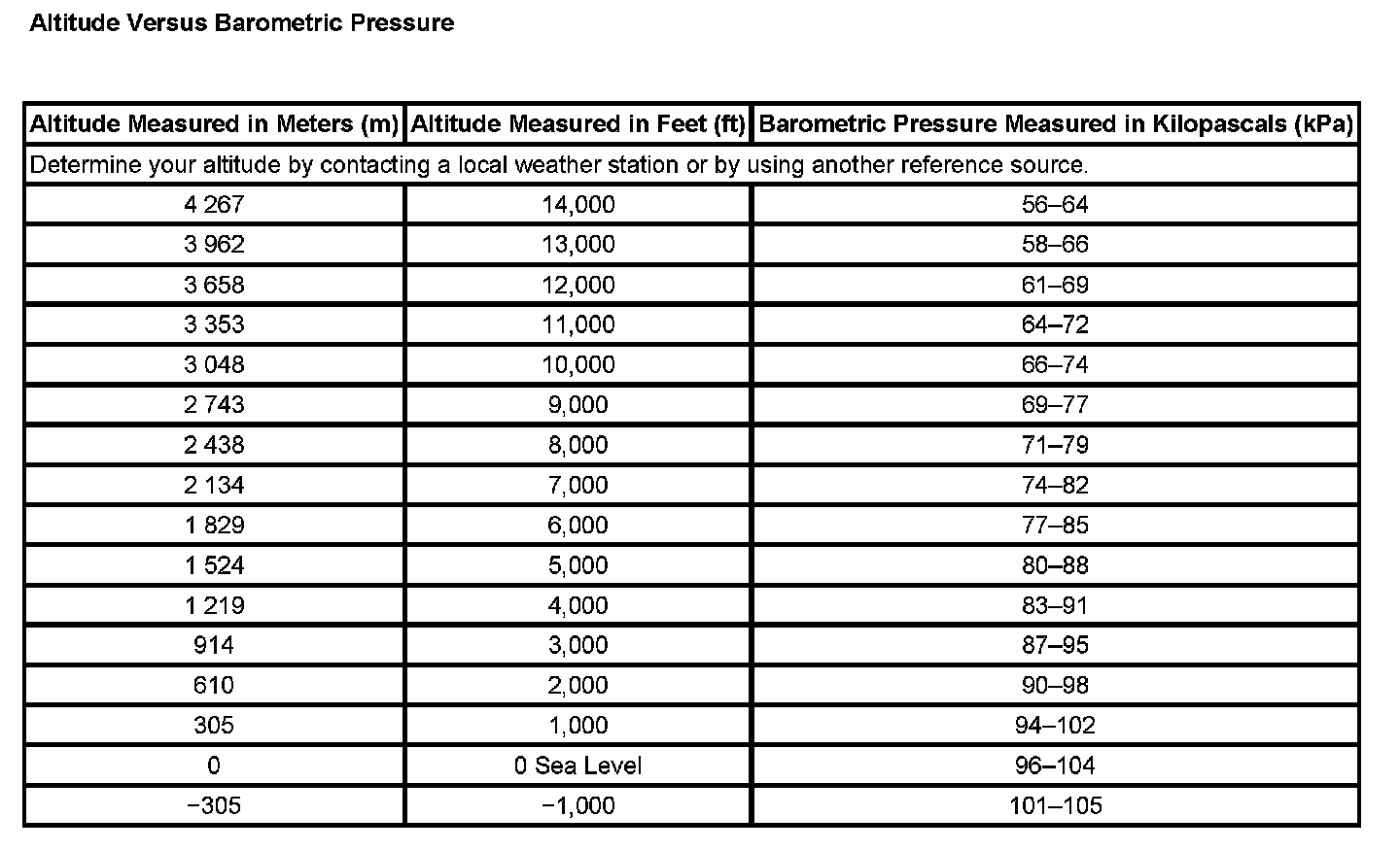 Altitude Versus Barometric Pressure: