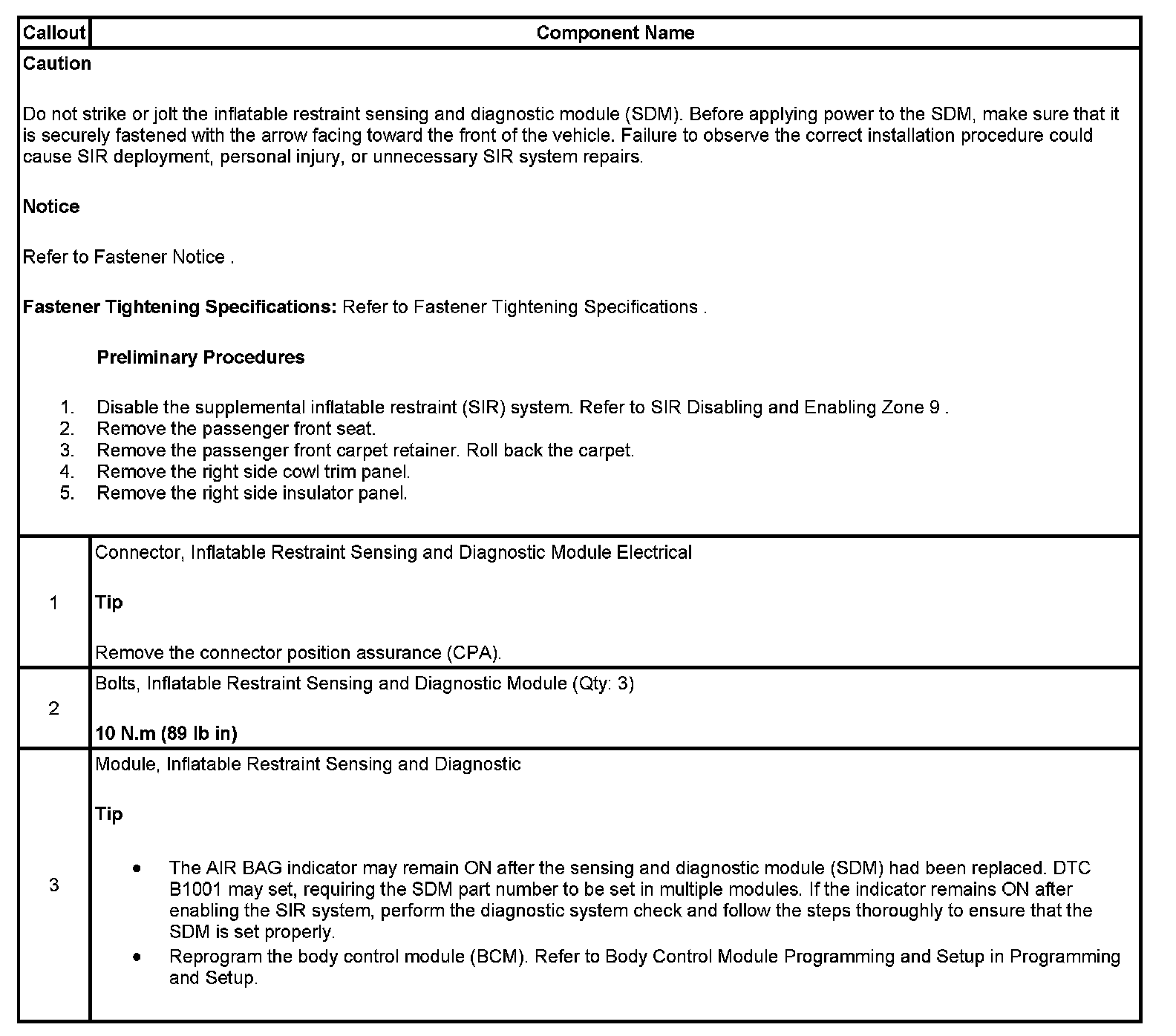 INFLATABLE RESTRAINT SENSING AND DIAGNOSTIC MODULE REPLACEMENT