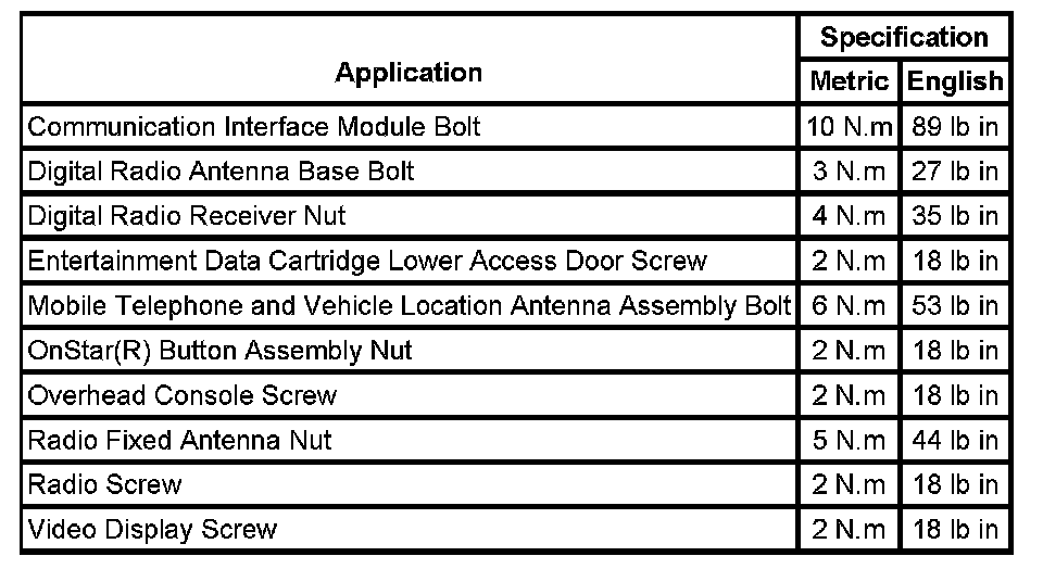 Fastener Tightening Specifications