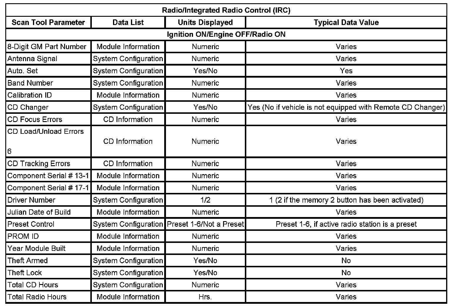 Scan Tool Data List