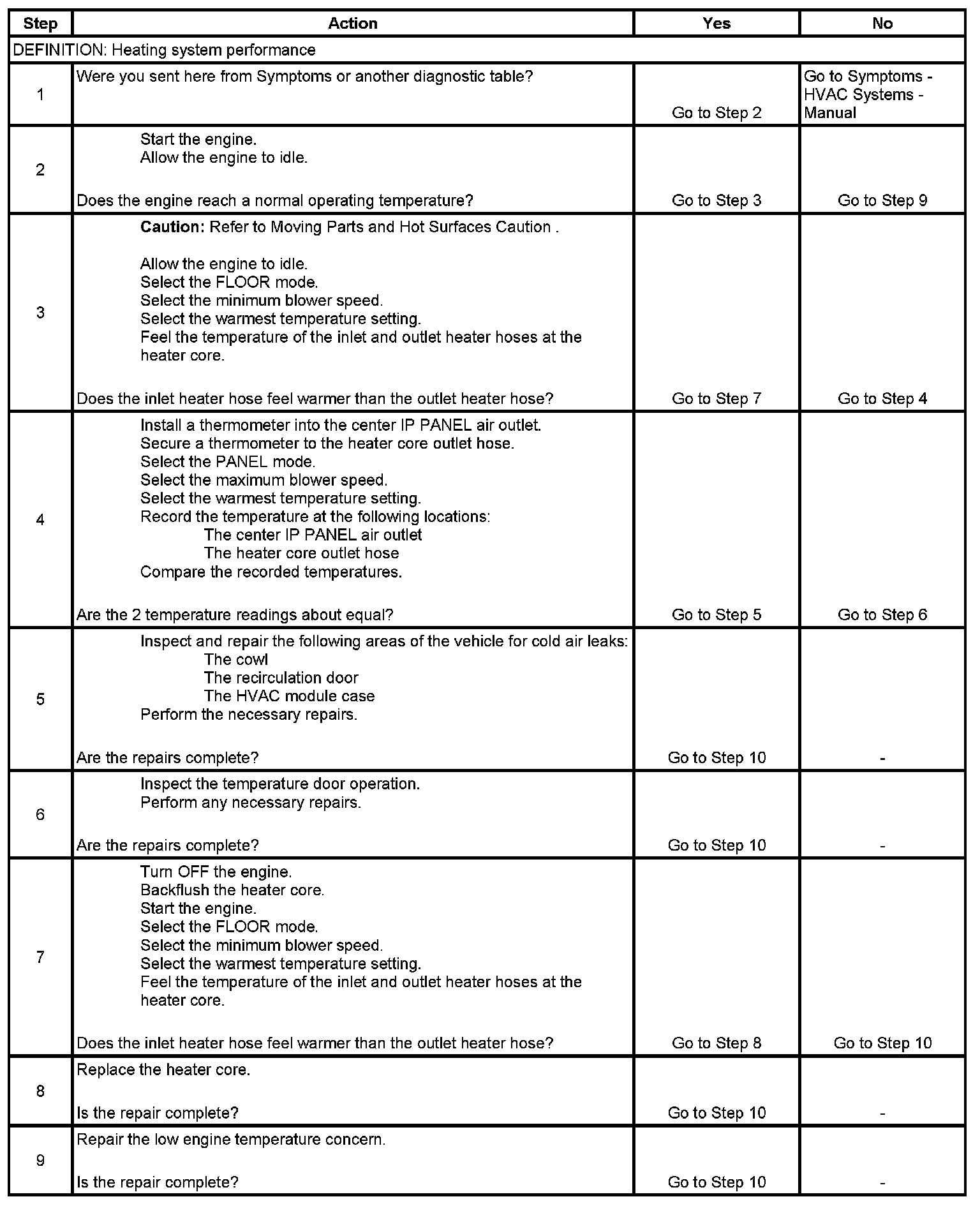 Heating Performance Diagnostic (Front System)