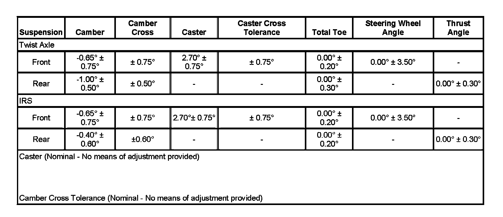 Wheel Alignment Specifications