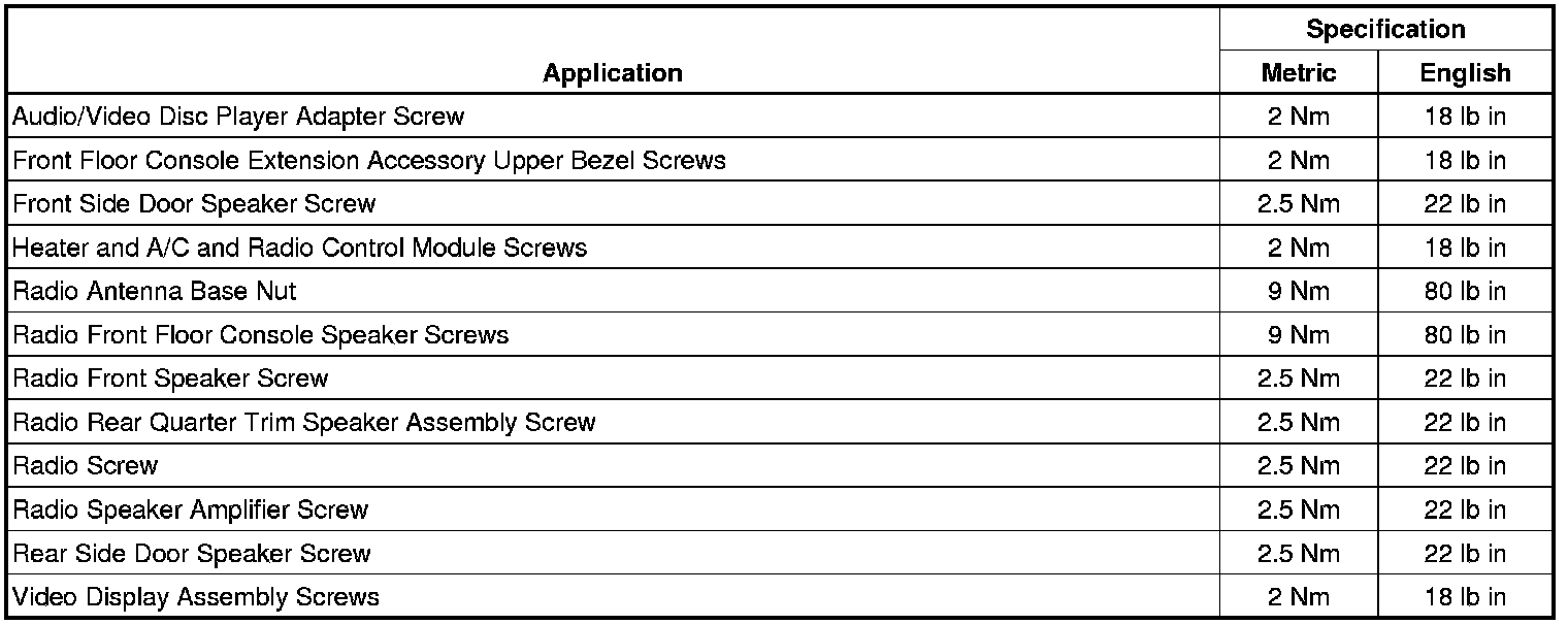Fastener Tightening Specifications