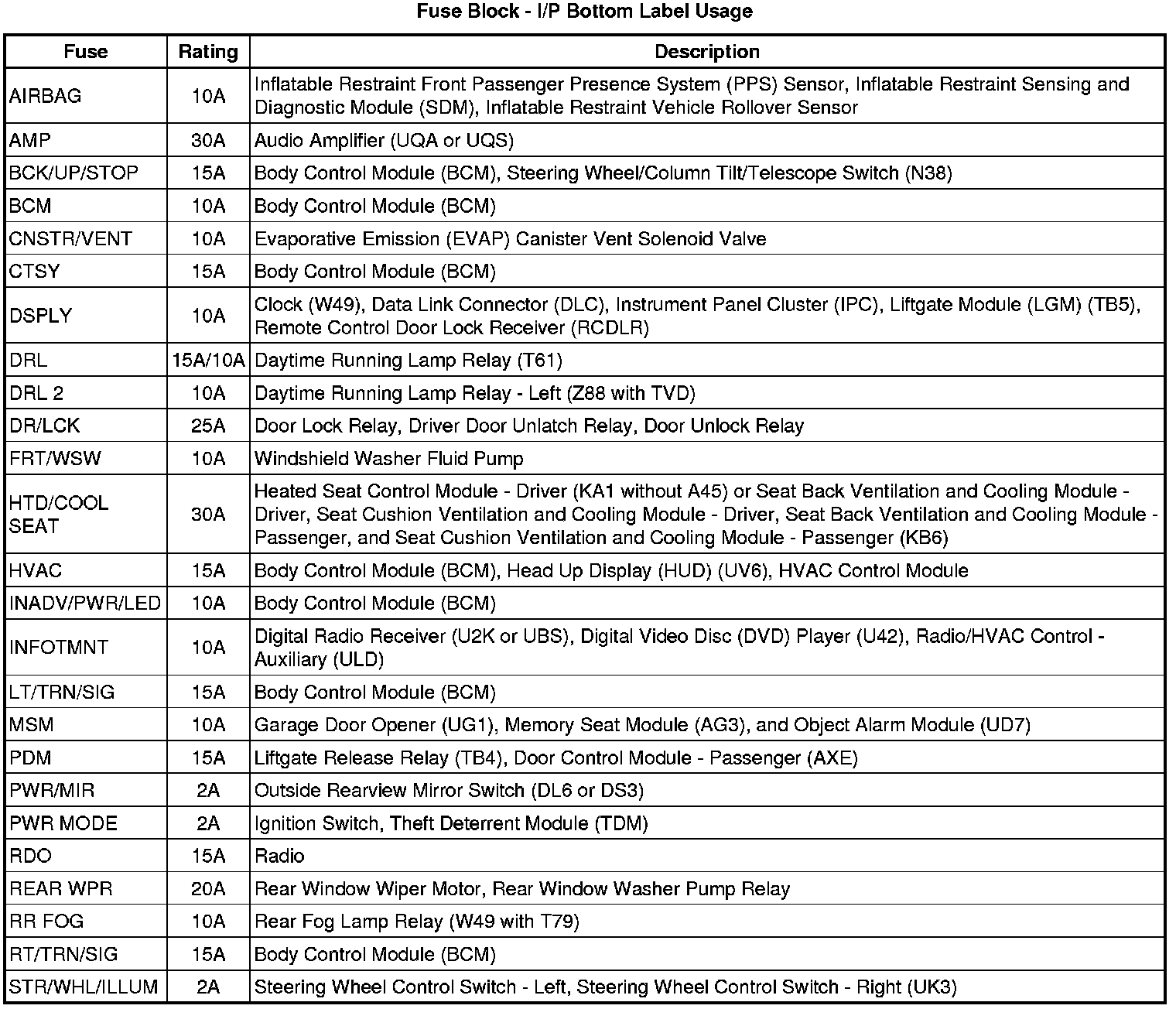 Fuse Block - I/P Bottom View