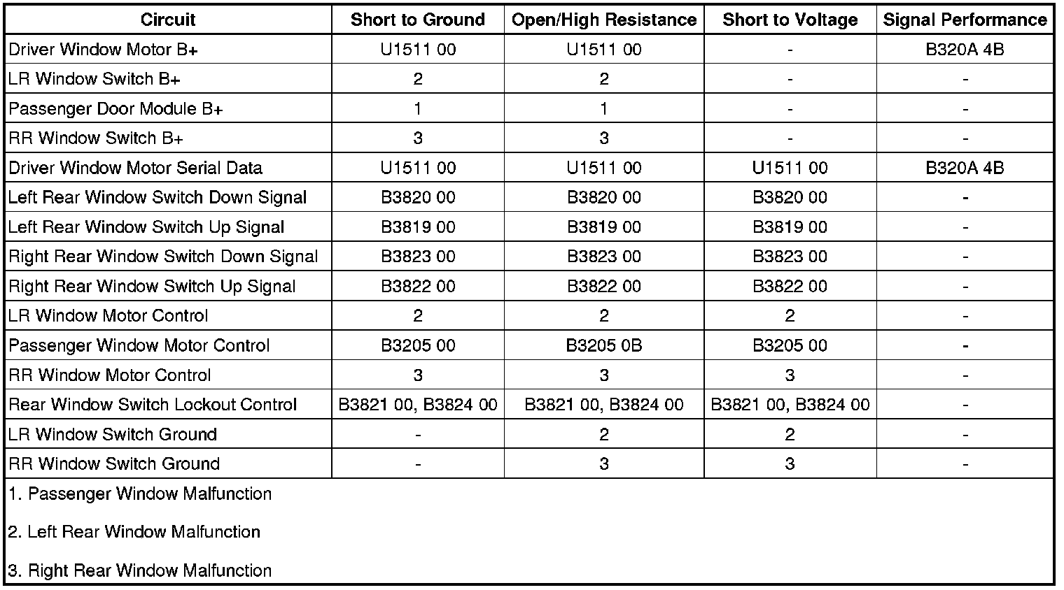 • If either rear passenger power window malfunctions, refer to Rear Passenger Window Malfunction.